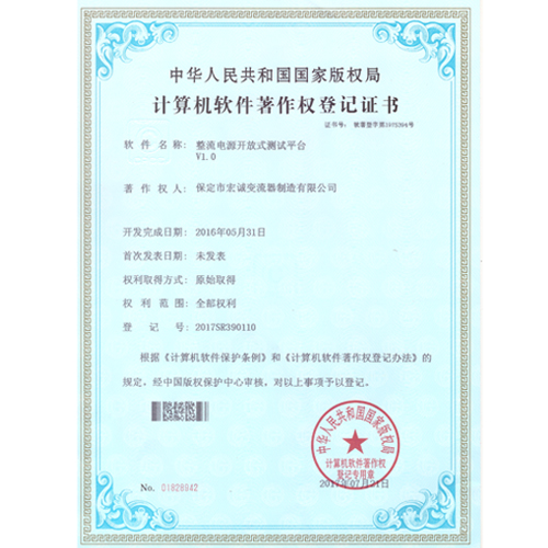 • 計算機軟件注冊權(quán)登記證書——整流電源開放式測試平臺V1.0