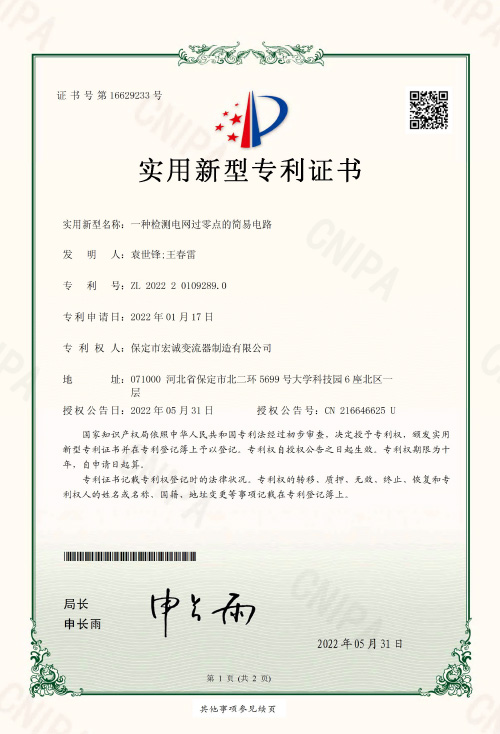 • 實用新型證書一種檢測電網(wǎng)過零點的簡易電路