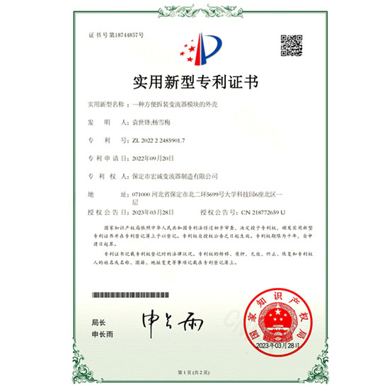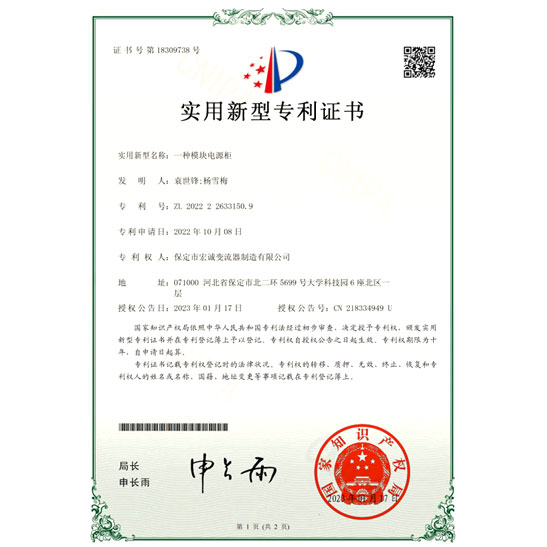 • 一種模塊電源柜實用新型專利證書