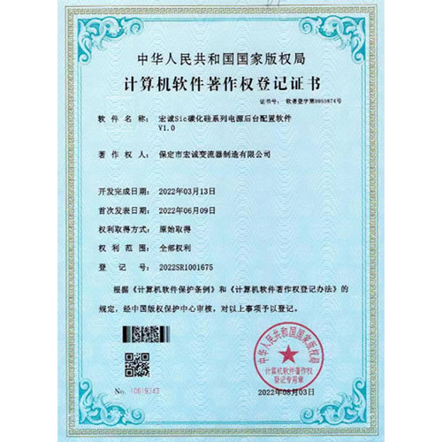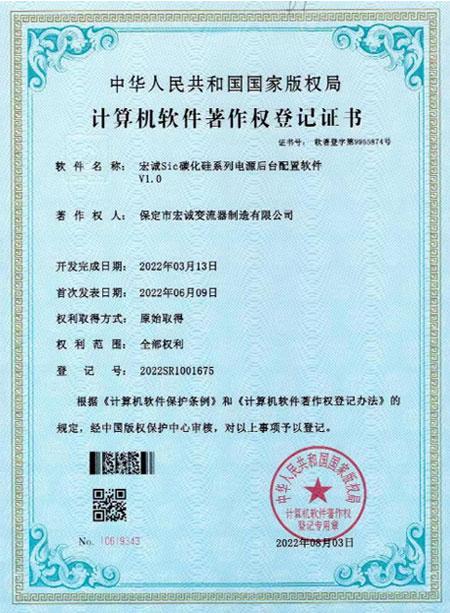 • 計算機軟件著作權(quán)登記證書--Sic碳化硅系列電源后臺配置軟件V1.0