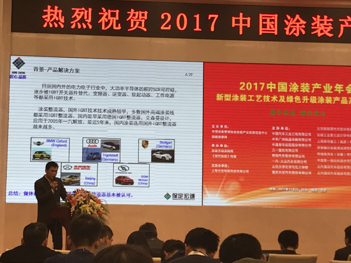 2018年7月2-3日,車身工程系列論壇 Car Body Painting 2018 第六屆汽車車身涂裝工程發(fā)展論壇在上海卓美亞喜瑪拉雅酒店圓滿落幕,保定宏誠變流器作為本屆論壇的贊助商之一參與了此次會(huì)議,并進(jìn)行了電泳涂漆節(jié)能解決新方案——HC-MACS(IGBT模塊電源)應(yīng)用的演講。